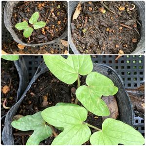 先週の日曜日に青いアサガオの種蒔きをしました。 12日に発芽🌱しました。 今日見たら子葉が出てきていました。 ①投稿