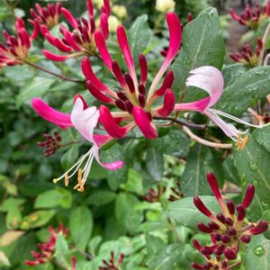 ハニーサックル 和名… スイカズラ (吸い葛・忍冬) 花言葉… 愛の絆・ 友愛 白、黄色、オレンジ、ピンク等の色合いで6種類位、有り! 花の咲く前の蕾も可愛い💕
