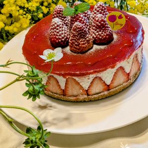 🍓番外編🍓 インスタにて応募にて当選した大分県産イチゴ🍓 スイーツの様な甘いイチゴ[ベリーツ]4パックを頂きました🍓 一パックはそのまま頂き残りの3パックでイチゴのレアチーズケーキを作成を…🍓🎂 3パックを使い切りました*\0/* 底にはまるまるとイチゴを敷き詰めてます🍓 何処をカットしてもイチゴ🍓 美味しゅうございました 😋