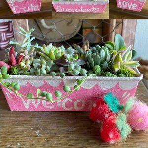 ぷにちゃんのプレ企画🎁に当選しました🎯😆 頂いた可愛いピンクのパウンド型にウチで増えた子とポチッた子たちで寄せてみました🥰一緒に頂いた小人の祭りさんは水栽培で根っこ待ち中です🍀 リメ缶 横も後ろも全部 可愛いから📷✨〜❤ 🏷毎月15日はいちごの日🍓 参加します🎵