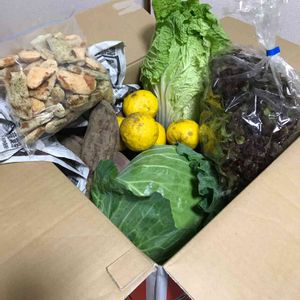 昨夜 おのたんさんから 野菜プレゼント企画の 当選品が 届きました‼️‼️‼️ ダンボールいっぱいに 新鮮野菜が ぎっしり! 手作りの 柚子胡椒や 七味や あられまで入っていて 嬉しすぎ😆 おのたんさん ありがとうございました🙌