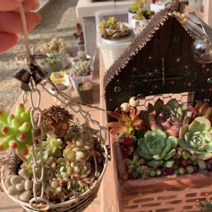こんにちは~💕 今日はインスタプレゼント企画で当選したプレゼント🎁が届きました😊 木箱鉢の方にはうちにあった子達を早速植え付け~💓 イリアの群生ちゃんカゴはこのまま届けて下さいました💕 嬉しすぎるぅ❤️素敵すぎるぅ😍💕