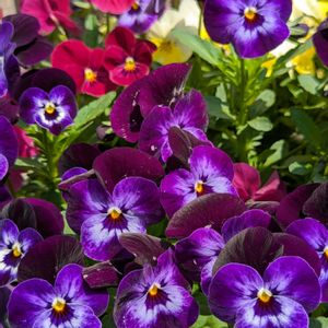 お正月の寄せ植えからハボタンとガーデンシクラメンを別に移しビオラだけを残してモリモリになってきました💜 紫と赤とクリーム色 綺麗です✨ 絵になるすみれもよく咲いてます