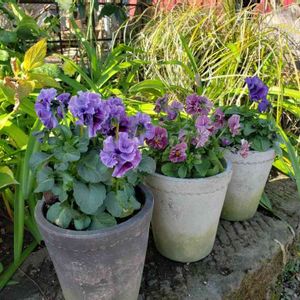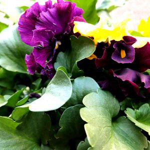 絵になるスミレ💜 ふりふりパンジーです💕 黄色いビオラと一緒に花かごへ💕