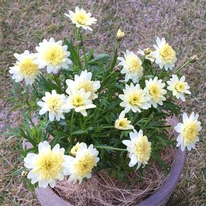ボンザマーガレット レモンイエロー🍋 今日は久しぶりに☀でした ボンザマーガレットも満開になってくれました🌸
