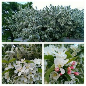 毎年気になっていたお花🌼 木全体に白いお花がびっしり咲いて、 まるで雪のよう(*´ω`*)モキュ♡ 今まで近付いて見たことなかったけれど、近所の公園にあったのでそばに行ったら、先日水に浮かべて遊んだお花でした! この木…それはそれは見事なお花でした(〃ω〃)💕 エゾノコリンゴ 蕾が濃いピンクで可愛い💖