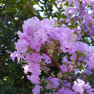 こんにちは。◕‿◕。 サルスベリ「百日紅」💠💜 薄紫色のヒラヒラの花びら💠 ふんわり優しい夏の1枚🎵 🏷木漏れ日の木曜日 🏷木曜日モフモフ 🏷青い夏の花マニア2021 夏撮影📱でしたので🎵