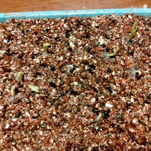 17日に蒔いたドラゴンフルーツ 全部の種60くらい蒔いて20くらい3日で顔を出してる ②の下半分はストレプトカーパスを蒔きました 5月に発芽したのも沢山あるのにどうするつもり? ひょっとしたら、今のが発芽したら5月のより成長早いかも? 庭仕事出来ないと嘆いていて、気力低下!それでも家の中の花たちのお世話はいっぱい有る! 又たくさん発芽させて気晴らしも良いけど、芽が出たら育てないとならないのだからね‼️