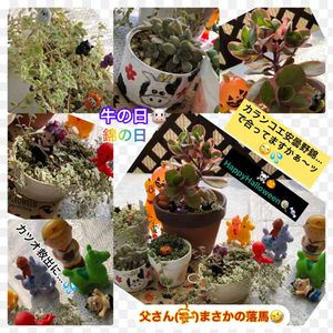 こんにちは💐 今日は…🏷錦の日&牛の日🐮🐄 参加させていただきますッ😆🎶 ♡o。+..:*♡o。+..:*♡o。+..:*♡o。+..:*♡o。+..:* …みらいさんの所でお見かけした…カランコエ安曇野錦さん… 家のと似てて🙄同じ物⁉️🤔…と気になりだしたら止まらない(笑)ꉂ🤣𐤔 …そして🏷牛の日🐮🐄 PANDAちゃんの🐮リメ缶🎶💓 カワユス😳❤ (╭☞•́ω•̀)╭☞からの? ☠🎃HappyHalloween🍭🍬仕様で投稿試みてみましたッ❗😅💦 何の競技かは分かりませんが(*´’Д’):;*:;カハッ ロディーに乗って1位を目指してた父さん(⸅̥᷇͏̵˲̎ͨ⸅̥̖᷆̾ ̵˒͋)…まさかの落馬(笑)🤣🤣🤣ꉂꉂ(爆)…🥇は焦げ茶キュピちゃんの物🥳🙌🤣🤣🤣 カツオ救出に来たけど野球⚾️の途中みたいで(°°;))。。オロオロッ。。・・((; °°)役に立たない(笑)🤣🤣🤣ꉂꉂ(爆)…って…何のこっちや⁉️ ┏○)) サ──センッシタァァ──!!