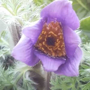 葉を開くと同時に 白い毛で覆われた花芽を伸ばし 短い毛で覆われた花を やや下向きに咲かせます🎶 花弁に見えるものはガク片です😻 (自宅の庭 鉢植え🪴) 翁草(おきなぐさ) キンポウゲ科