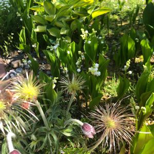 オキナグサがタネになり始めました。 後ろではスズランが次の出番の準備中‼️