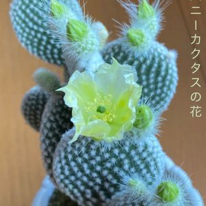 バニーカクタスのふんわりした花が咲きました🌼 蕾をたくさんつけていたバニーさんの初めての開花 ベランダでお日さま浴びて、気持ちよかったのかな⁉️