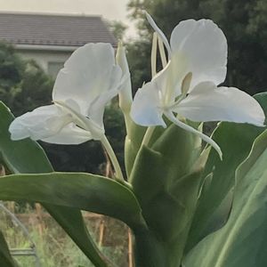 おはようございます 我が家のお花達 ジンジャー 咲きました シュウメイギク ユーフォルビア スノーブリザード 青じその花 ムクゲ 🏷️白い水曜日♡