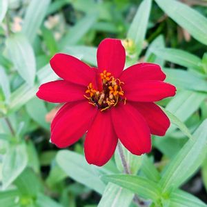 おはようございます🌅 今日のお花ヒャクニチソウ❤️ キク科ヒャクニチソウ属🌿 別名−ジニア🌿🤣🌿 ①真夏にピッタリの元気色❤️ ②③猛暑でもモリモリ咲いて くれてありがとう🌿❤️ ④初めましてのペラルゴニウム・シドイデス🌿💜🌿 ⑤シルバーっぽい葉っぱも素敵🌿 🏷月曜日は元気色の花 🏷赤い花 🏷愛の花♡ 今朝の散歩道で🌅