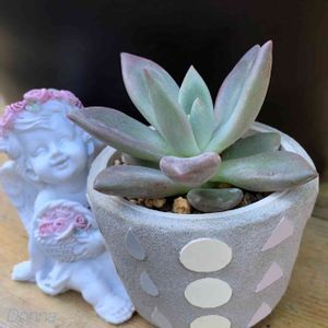 おはようございます☀️ Chopinさんの🏷エンジェル祭りに 参加させていただきますね✨✨ 多肉 ルビードナの赤ちゃん👶 可愛い鉢で自立です😊 優しく見守るエンジェルに ズッキュ〜ン💘💘💘💘💘