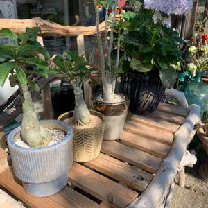 我が家のアデニウムさん達 素敵な三兄弟 鉢もお気に入りなんです╰(*´︶`*)╯♡ 🏷棒の日 🏷おしゃれな土曜日に参加します🎶