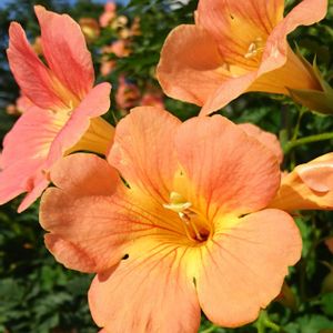今日のお花🌼 先月もあったよ~😅 💟ノウゼンカズラ💟 ノウゼンカズラ科・ノウゼンカズラ属 ツル植物で夏の間オレンジ色🧡の花を 次々に咲かせる元気花🌼 6月撮影📱💥 今は☂️や風で終わっています 花言葉🌼 『名声』『名誉』 花の形がラッパのようだから 祝福のファンファーレ🎉🎺🎶 🏷️おしゃれな土曜日♪