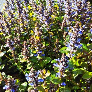 アジュガチョコレートチップ(だったと思う💦) 寄植えからバラして借りおきした方はとってもノッポになって25cmの花穂🙄 グランドカバーになってはびこってる方は半日陰もあってその半分ほど〜同じ植物でも条件で違うものですね〜😀 GS友さんのピンクのアジュガ可愛くていいなぁ〜はびこらせたいな🤗😘