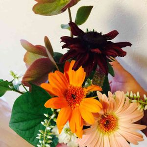 我が家の今期最後のガーベラです! 咲き終わった後のクリスマスローズも参加してもらいました〜