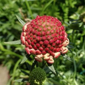 金曜日の蕾たち、これは一年草タイプのスカビオサのつぼみです。品種はわかりません💦