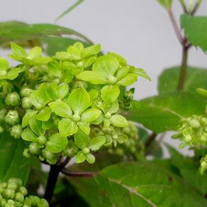 緑色をした山紫陽花 緑宝 色鮮やかな山紫陽花の中に このグリーンは目をひきました