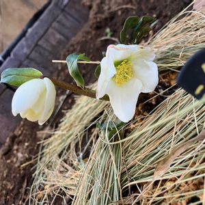 今日の庭から 元気を出すには、お日様を浴びるのが 大切🌞と花友さんに教えていただき、気温は一桁でしたが、午前中に庭パト開始 クリローさんやクロッカスの開花を確認出来ました👍 1)クリスマスローズ ニゲラが地面すれすれに開花 2)少しお顔をあげて撮りました。 3)クロッカス一番乗りは、やっぱり白 たった一つだけ咲いてました。 4)チューリップ ホワイトバレーの芽 11月に植えたものですが、ちょっとだけ芽を出してます。 5)10月に植えたトリテレイアの芽はだいぶ伸びてます。こぼれ種のビオラもどんな花を咲かせるのか楽しみです。