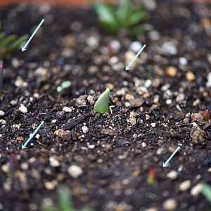 記録として 12月に密植したチューリップの球根、芽が出てきました。数えたら、しっかり10個ありました。 同じタイミングで3色咲いてくれると嬉しいなぁ💕💕
