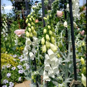 お休みしてた分、連投しました(﹡´д人)) ジギタリス シルバーフォックス もふもふの葉っぱ、ラムズイヤーの触り心地に似ています₍ᐢ‥ᐢ₎ 秋に植えたら、10本くらい脇芽が出て、その途中からも2~3本花芽が上がり、1株なのにめちゃくちゃ豪華に大きくなりました❣ うちは強風が吹き抜けるので支柱必須՞՞ 写真撮るとき邪魔だけど、なぎ倒されない為には仕方なく… もふもふな分、暑さに弱そうな予感 うまく夏越しできたらいいな(*´ω`*)