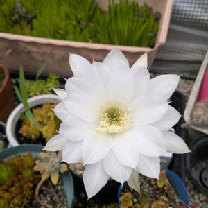初めて咲いたサボテン😍 買った時は鉢に入ってたけれど、今は鉢からはみ出してます😄