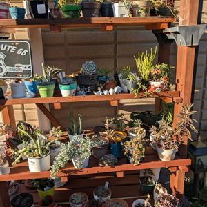 スノコで作った多肉棚😍 紫外線や赤外線のお陰か? 何年も板材が持つわけもなくスノコ2枚分を替えました✌️
