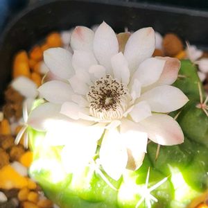 おはよー御座います(*^^*) 右の🌵さんは100均一ご出身です。 お花咲きましたよぉー! 白花さん😊💗 可愛いっ♪ って、写真を撮ろうとして左側の鉢を落としてしまい。。。😭 この後、大変な事になりました💦