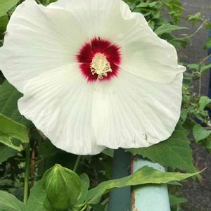 おはようございます☁️ 八重のハイビスカス珍しいので🤳 女子高の校門前花壇に咲いていました💕