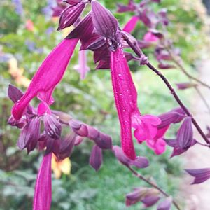 コチラ、、チェリーセージ ’ ピナフォア ストロベリー ‘ 〜 チェリーセージの中で、1番好きなイロ 〜 ╰(*´︶`*)╯💗