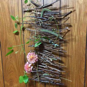 小枝で作ったタペストリー🍂 森のお散歩も楽しくなります💖 中に入れた小さなガラス瓶には毎日庭の花一輪🌼 早く来い来い春よ恋🌷🌷🌷