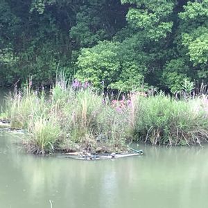 近くの池にて 植物の島みたく ちゃんと囲いが施されてます 市の職員さんかしら? ありがとうね🍀