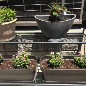今年も植え付けました^ ^ 10号に3株植えです。 園芸店の方いわく、今年のサンパチェンスは苗の発育が悪く、数量が確保しにくいとか? また豪華に咲いてくれるのが楽しみです