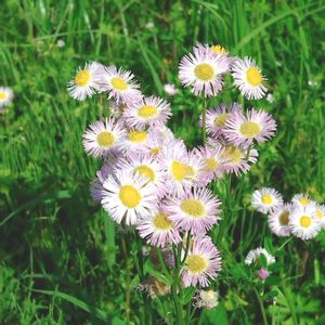 今日のお花💐「ハルジオン」🤍 実家の庭で、すごい草花たちが急成長。 草刈りをする前に、草花たちを撮影しておきました。 ①ハルジオン🤍🩷 ②アメリカフウロ🤍🩵 ③イモカタバミ💗 ④キュウリグサ🩵 ⑤マツバウンラン💜 群生しているとお花畑みたいですが、他の草も多くて草刈りが必要ですね😅 この時期、すぐにまた伸びてしまうんですけどね💦