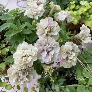 ペチュニアジュリエット モダンホワイト♪ 気温が下がり こんな色で咲いてます。 この色がまた見たかったのです♪