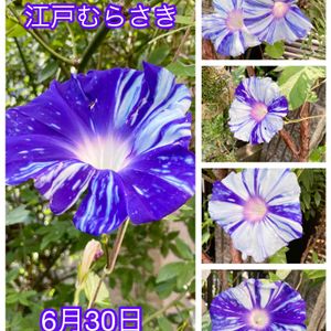 おはようございます☀ 今日も酷暑 東京は熱中症警戒アラート🥵です💦 皆さんお庭仕事は 気をつけてくださいね🍀 朝顔 江戸むらさき 右上から順番に咲いてきましたが 今日はやっと本来の綺麗な紫の花が 咲きました😍 暑いけど 朝顔を見るとホッとします💓 今日も無理せず よい一日をお過ごし下さいね♥️