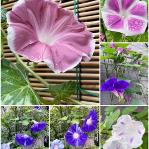 おはようございます☀ 朝顔一つの花がたくさん咲いてきました 恋しぐれは行灯仕立てです💙💗 まだ2色ですが💕 素敵な週末をお過ごしくださいね🍀