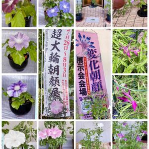 今は降ってませんが 朝雨が降っていて 朝顔もぬれて左下の江戸むらさきは こんなに下向き😰 でも優しくお顔見せてもらい 撮り直しました 一本から模様の出方が違いますね💜 あとは昨日の恋しぐれや西洋朝顔は 元気に咲いてます😊 そして今日のお初顔は左上のこの子 講習会で頂いた苗で 松1112となってます この番号によって色がちがうみたいです😊 団十郎みたいで 私好みの色です♥️ 今日も元気出していきましょうね♥️