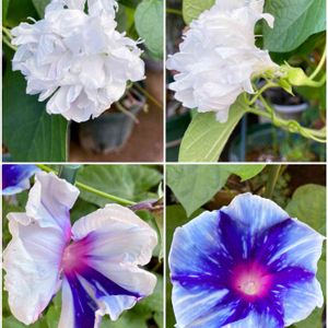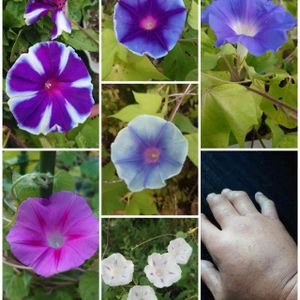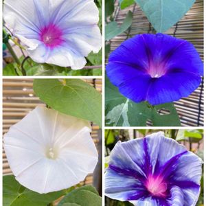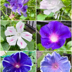 今朝の朝顔💜💙 上段 丸葉ヒゲ咲き 綺麗に丸く咲く時と 今日は花びらがヒラヒラで とっても綺麗💓 中段 左 変化朝顔 とってもきれいに分かれて ます💓 右 西洋朝顔 下段 左 富士の紫 右 富士の空 青系ばかりです💙💜 今日も良い一日をお過ごしくださいね♥️