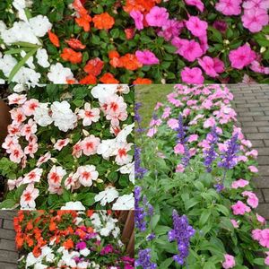 今日3枚目は今庭で咲いてる松葉牡丹🏵 上の段はこぼれ種で咲いたもの🌱 あちこちから芽が出て、こんな色植えた憶えない?🤔 毎日咲いては萎み、また咲いて驚いてます🤗 下の段は、苗を買って植えたもの🌿 一株で赤・白・ピンク、お得感満載ですね🤗 左下は先祖返りしたものです🤭 🏷オレンジ色の花も好き 🏷月曜日にビタミンカラー