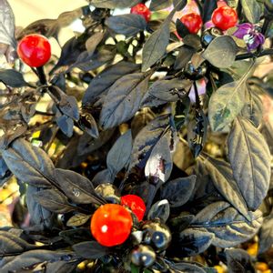 10月はまだブラックだった実が赤く熟し楽しませてくれる観賞用トウガラシ 可愛いけどクールな雰囲気で👍