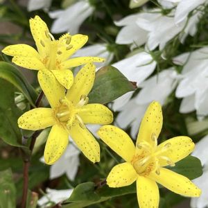 ♡キバナホトトギス♡今日のお花 宮崎県に分布するホトトギス品種。黄色い花びらには黒~紫色の細かな斑点模様が入ります 鉢植え2年目!こちらも猛暑の影響でだいぶ弱りやっと3輪だけ開花しました。 花数が少ないのでイワシャジンとトレニアと一緒に〜✿˳༚༅༚ ❶❷❹黄花ホトトギスとイワシャジン ❸黄花ホトトギスとトレニア