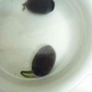 古代ハスの実、デカイ。 黒くなっているのが種。 種は、ドングリみたいな形です。
