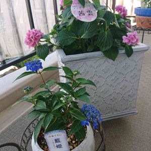 GWに開花鉢で届いた茜雲はそろそろ終わり…😢 あまりにも寂しくて大きさもお値段もかわいすぎた藍姫さんを連れて帰ってきちゃいました🎵 色も咲き方も対照的なこの子たち❤️❤️ かわいいっっ