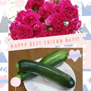 昨日の収穫😊 ズッキーニの初収穫🥒📏手前は17cm。2株植えましたよ🌱 ズッキーニは日毎に大きくなるので悩みましたが✂️😋〰️❣️ ツル薔薇、キングローズ🌹とともに😉