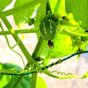 1️⃣ オキナワスズメウリ🟢 1個だけ実ってる⁉️ 雌花がなかなか咲かないみたいです🤔 リース目指して頑張れ~ ჱ̒⸝⸝•̀֊•́⸝⸝)Fight‼ 2️⃣ リグラリア “ブリット マリー クロウフォード” 一昨年、帯広の叔母の庭から株分けしてもらったお花です💛 ツワブキの近縁だという巨大な銅葉がワサワサで寒さにも暑さにも超強靭‼ それ以上大きくなったらダメだよ💦 ୧((〃•̀ꇴ•́〃))૭テッキョスルヨ‼