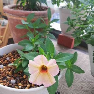 母の日に実家用に作った寄せ植えからの、ハイブリッドペチュニアブリッジバニラピンクの挿し芽っ子ちゃん🥰 株が大きくなるまではとずっと花芽をカットしてましたが、ついにガマンできずに1つ咲かせました😋 ちなみにこれで二株です。 2つとも斜めにピヨ〜ンと伸びてしまって💦 少しずつ切り戻したりもしてますが、ずいぶん偏ってます😅 まぁ初めての挿し芽っ子ちゃんだし、お花はほんとに可愛いのでヨシとしよう😁 気がつけば8月も終わりなので💦そろそろもっとお花を楽しみたいな〜😊
